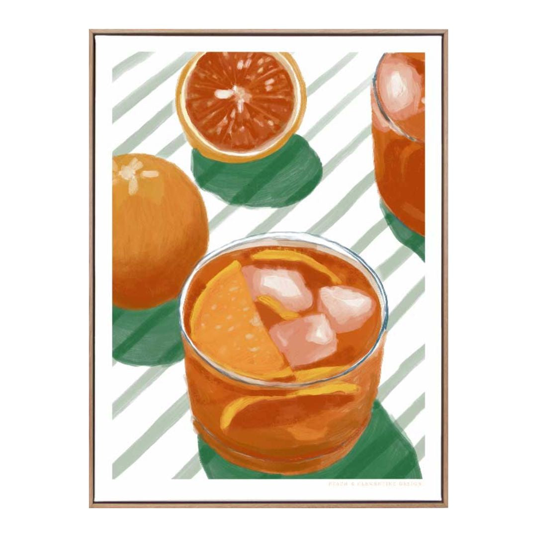 Amalfi Hour Canvas Art Print - Sun-drenched citrus and a perfectly poured cocktail set the scene in this retro poster artwork by Jenny Liz Rome, evoking the laid-back charm of an Italian summer. Warm oranges and soft greens bring a vibrant yet sophisticated touch, making this a perfect addition to any wall art collection. Whether styled in a kitchen, bar area, or living space, this artwork embodies the relaxed elegance of a European getaway. It pairs effortlessly with retro beach prints and cool artwork prints to create a nostalgic yet modern aesthetic.