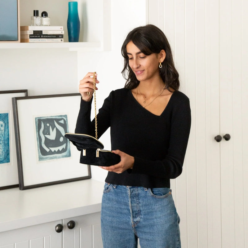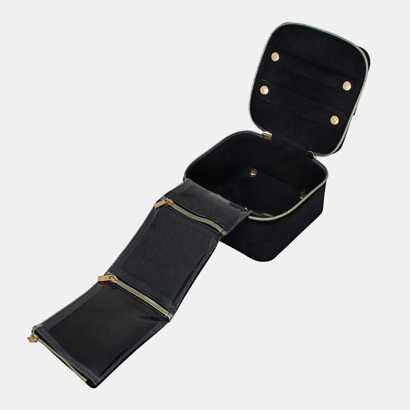 Keep your cherished pieces safe and free from damage in our Luxe Velvet Jewellery Cube. The patented clever design has 4 individual zip compartments, a separate pouch, ring holder and earring holder. Keeping your items all visible as you open your cube at home or while travelling. Made from a soft velvet, our jewellery cubes are made with the modern jewellery owner in mind.