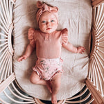 Our high waist baby bloomers have a gentle, elasticised waistband with a frill across the back and around the legs - for a touch of detail. Made from high-quality GOTS certified organic stretch jersey, our organic high waist baby bloomers are designed to withstand the tough life of play. You will fall in love with their fit, softness and versatility. We are certain they will become your favourite go-to! Used for the most stylish babes, these high waist baby bloomers are suitable for loungewear, daywear, birth announcement photos and even baby gifts. These organic high waist baby bloomers make your bub’s wardrobe beautiful. Growing up with Snuggle Hunny Kids never looked so good!