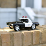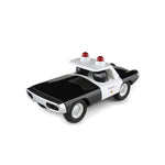 Constructed from heavy duty plastic with moving rubber wheels and designed in the UK, the Maverick Heat Black and White is a blast from the past. Retro lines styled on the Ford Thunderbirds of the 60's, the Black and White has a chrome grill and wheel rims and white banding which follows the roof line with sheriff badging including a gold star on the doors. Complete with two red police lights on the roof, this Thunderlane is reminiscent of a typical black and white vintage police car. Perfect for the playroom, it is solid enough for everyday play or leave it on the shelf as stylish room decor!
