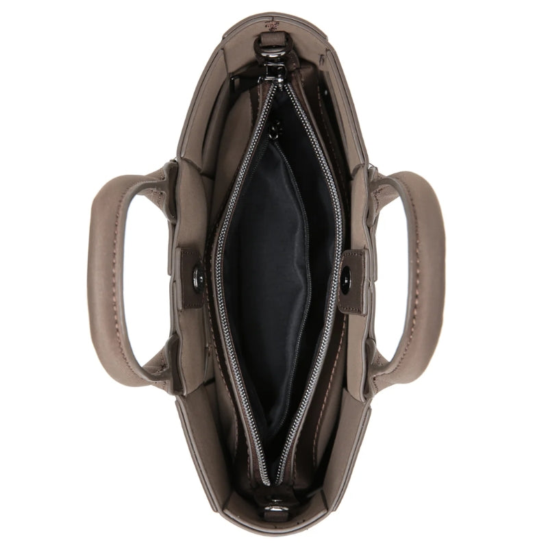Includes removable clip-in interior zip-top purse with phone pocket and internal zip pocket