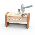 Equipped with a hammer, saw, screwdriver, wrench, screws, and nails, it's just what your little builder needs to hammer out big ideas! Built tough for enthusiastic play, its compact design makes it easy to store and carry around. Screw in some imagination and build hands-on fun with this delightful gift for your mini carpenter!  This toy is crafted from sustainably sourced wood from FSC® certified forests and coated with non toxic, child-safe paint.