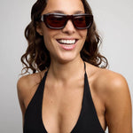 signature szade ; meet spence, he's got old world charm but with a contemporary fashion edge. a super sharp browline complements the rectangular frame and pays homage to indie sleaze, rock and roll icons who all wore similar square style sunglasses. if you're looking for a modern classic, spence in a rich chocolate brown shade is it.