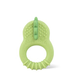 Made of soft, food-grade silicone, this textured Dino teether is designed to soothe and comfort teething babes.