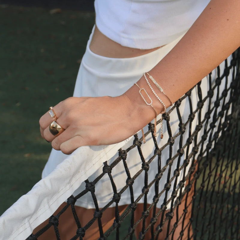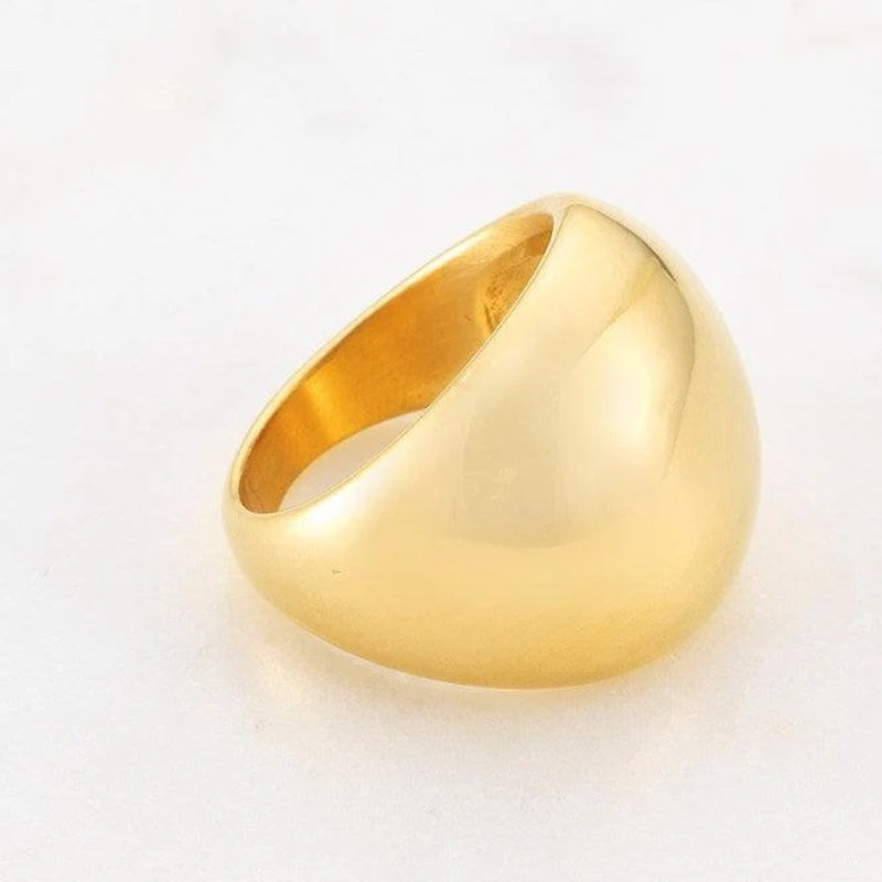 This ring features a striking dome shape design, exuding confidence and modernity. Its bold presence and unique silhouette make it a standout accessory that adds an instant touch of glamour to any outfit. Whether worn on its own as a centrepiece or paired with other rings for a trendy stacked look, the Ariana Ring is sure to make a lasting impression.