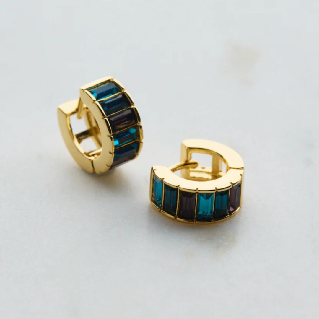 This huggie earrings feature an enchanting ombre design, with a mesmerising array of crystals lining the width of the huggie. The gradation of vibrant crystals creates a captivating and dynamic visual effect, adding a touch of sophistication and allure to your look. The Kira Earring effortlessly blends modern style with a hint of glamour, making it the perfect accessory to elevate any ensemble. Whether you're attending a special occasion or simply want to add a pop of colour and sparkle to your everyday attire, these earrings are designed to make a statement. Upgrade your jewellery collection with the Kira Earring and let its radiant ombre of crystals reflect your unique sense of fashion and elegance.