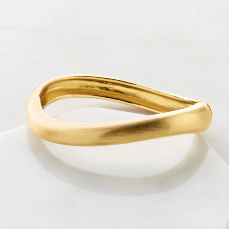 Make a statement with the Nara Brushed Bracelet, a bold chunky bangle featuring a convenient spring closure. Finished with our distinctive brushed texture, this bracelet is perfect for wearing solo for a sleek, modern look or stacking with our Olivia and Ally bracelets to create a striking layered effect. Its versatile design and textured finish make the Nara Brushed Bracelet a standout piece in any jewellery collection.