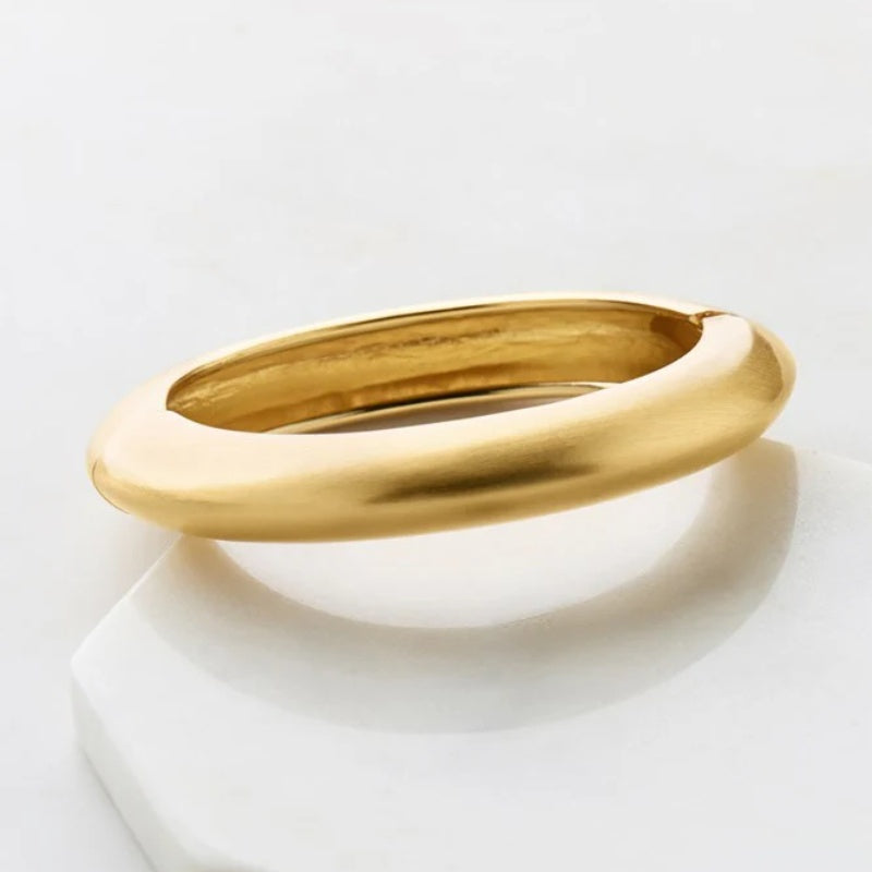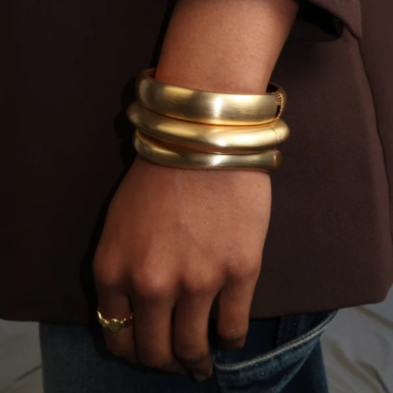 Make a statement with the Olivia Brushed Bracelet, a bold chunky bangle featuring a convenient spring closure. Finished with our distinctive brushed texture, this bracelet is perfect for wearing solo for a sleek, modern look or stacking with our Ally and Nara bracelets to create a striking layered effect. Its versatile design and textured finish make the Ally Brushed Bracelet a standout piece in any jewellery collection.