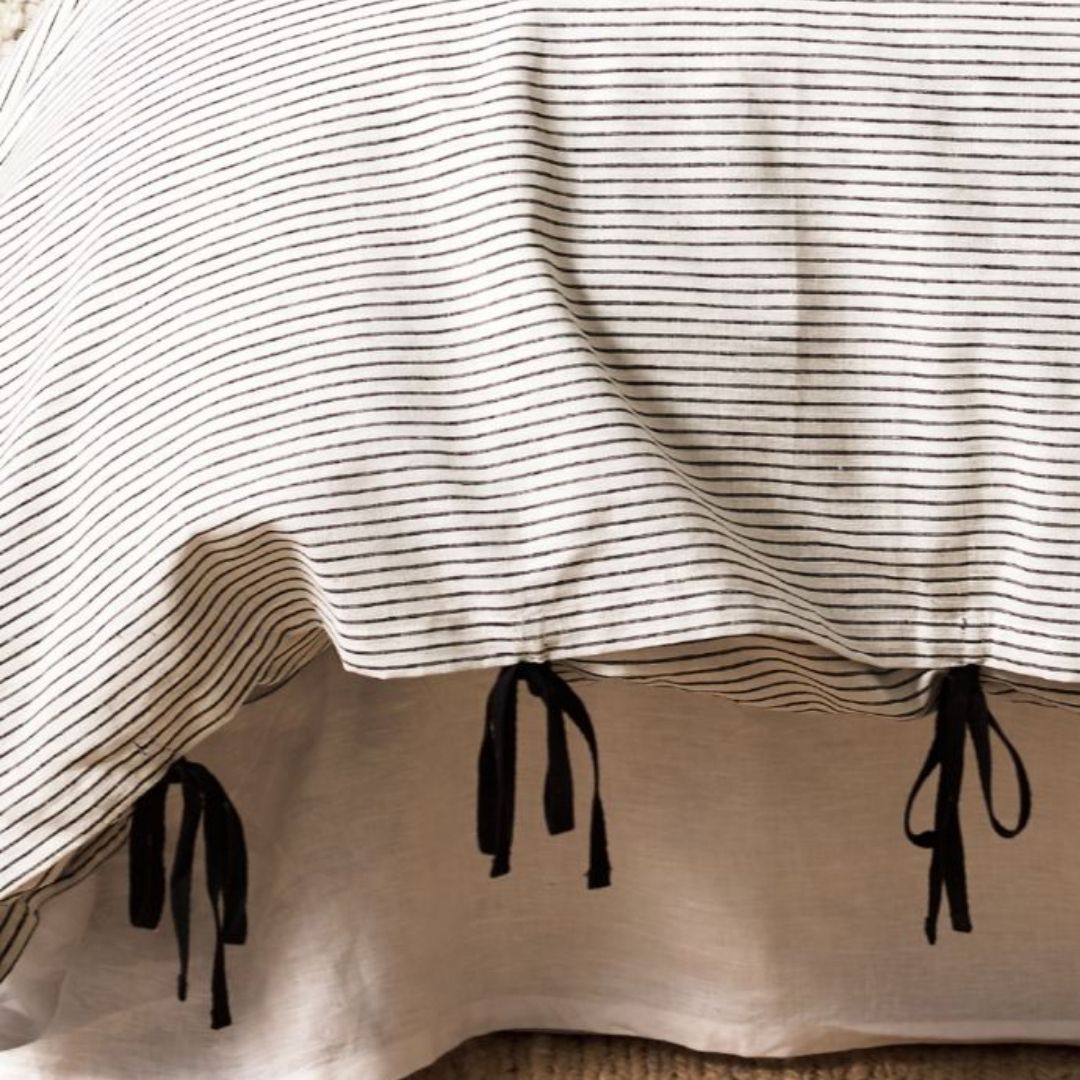 The Chambray Mini Stripe Linen Cotton Quilt Cover comes in a modern natural colour palette and is finished with our trademark hand-ties and a vintage wash to bring out the fabric's natural softness, plus, thanks to its MADE IN GREEN by OEKO-TEX® certification, you can take comfort in the knowledge that your bed linen carries a traceable product label, assuring that environmentally sound best practices have been followed throughout each stage of production, and guarantees that it has been made free from harmful substances and under socially responsible working conditions.