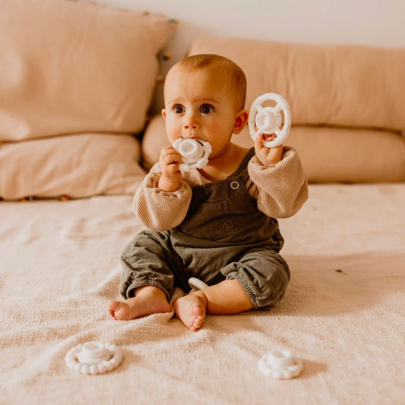 Babies love chewing on the soothing silicone rings and older children grow up practising their hand-eye coordination by stacking the rings, using creative thinking and problem solving skills to put the stacker back together.
