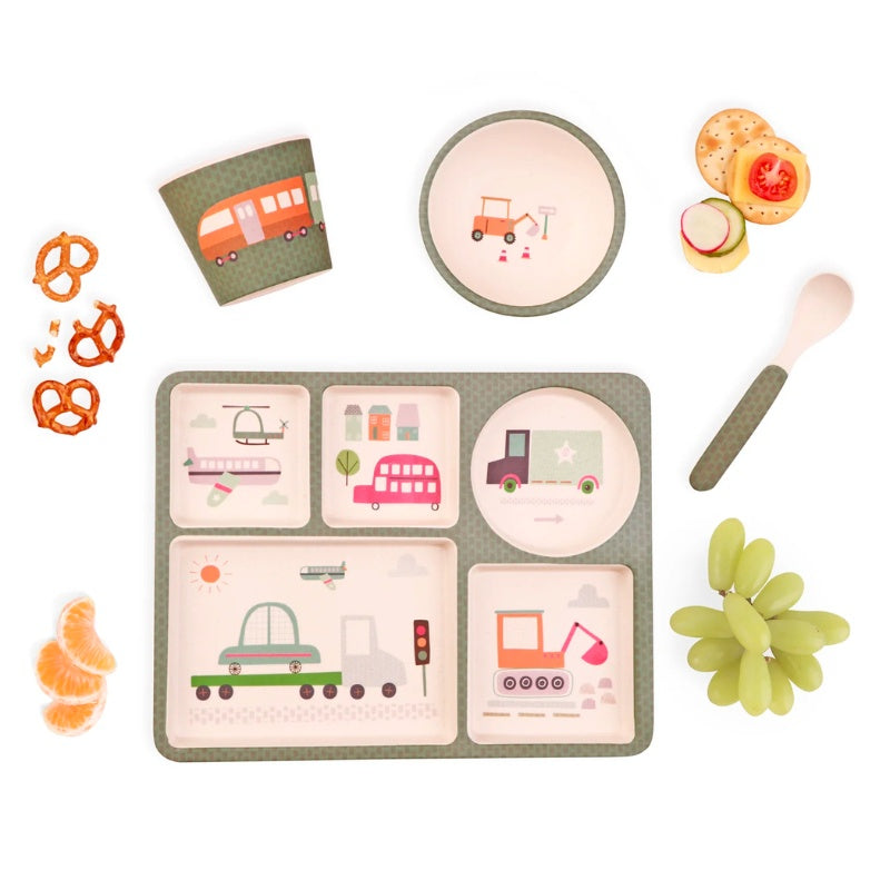 Thoughtfully designed with the planet in mind, our bamboo sets are made from mostly natural fibres, making them compostable whilst remaining safe and durable. This divided plate set features a wide-based cup perfect for miniature hands to hold, and smooth cornered plate compartments making washing a cinch.