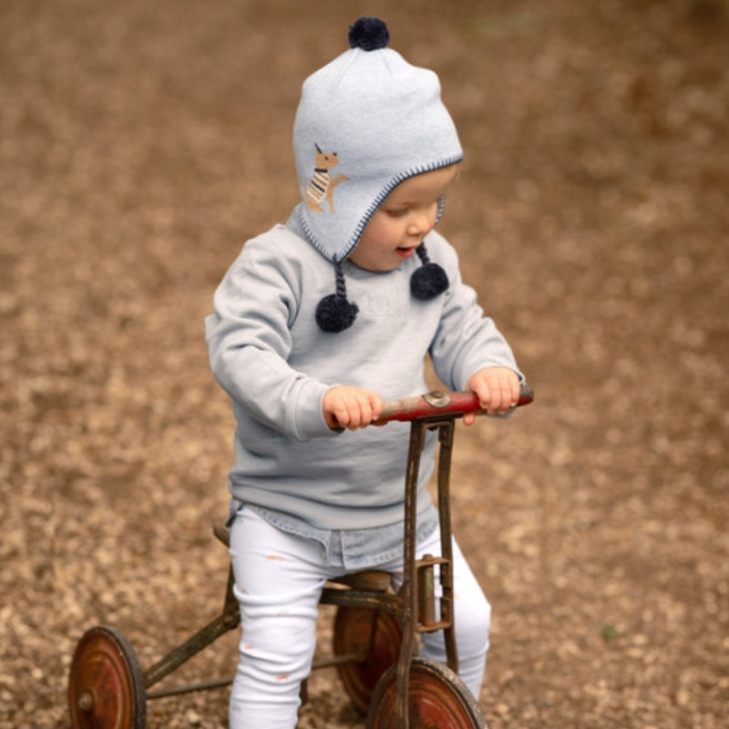 Toshi Earmuff Storytime is crafted from the finest quality certified 100% organic cotton yarn. Organic certification ensures the beanie is gentle on heads, as well as our precious environment. The beautifully textured melange yarn brings an element of refinement to the beanie. This beanie features ear flaps for cosy and nurturing protection from the elements. Pom poms introduce a cute and playful look. The baby beanie Earmuff Storytime is fully lined for enhanced comfort and greater warmth during our cooler months.