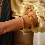 The Alana Hammered Cuff is a bold and beautifully crafted statement piece. Featuring a textured hammered finish, this gold cuff measures 5.9cm inside with a 2.4cm opening, ensuring an easy, comfortable fit. The cuff’s top width of 0.6cm adds subtle sophistication, making it perfect for layering or wearing solo. A versatile silver cuff bangle that brings timeless elegance and artisanal charm to any outfit.