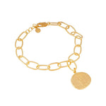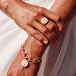Add a touch of nostalgia and timelessness with this handcrafted show-stopping bracelet. Carrying a textured ancient 5th century Roman coin design, it is bold and beautiful worn solo or as stand-out pieces or layered with your everyday essentials. Paired perfectly with our Ancient Coin hooks, drops or necklace.