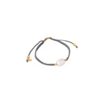 Add some candy to your arm with our best-selling freshwater pearl rope bracelet. Featuring freshwater pearl on grey cord with sterling silver 18k gold plate finishings.