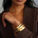 Make a statement with the Ally Brushed Bracelet, a bold chunky bangle featuring a convenient spring closure. Finished with our distinctive brushed texture, this bracelet is perfect for wearing solo for a sleek, modern look or stacking with our Olivia and Nara bracelets to create a striking layered effect. Its versatile design and textured finish make the Ally Brushed Bracelet a standout piece in any jewellery collection.