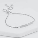 Introducing the Billie Bracelet, a chic and versatile accessory that will enhance any wrist. This adjustable bracelet features a delicate chain and a thin rectangle pendant adorned with a sparkling crystal. The minimalist design of the Billie Bracelet exudes elegance and sophistication, making it suitable for any occasion. With its adjustable length, it offers a comfortable and customisable fit for all wrist sizes. Elevate your style and add a touch of glamour with the Billie Bracelet, a must-have addition to your jewellery collection.