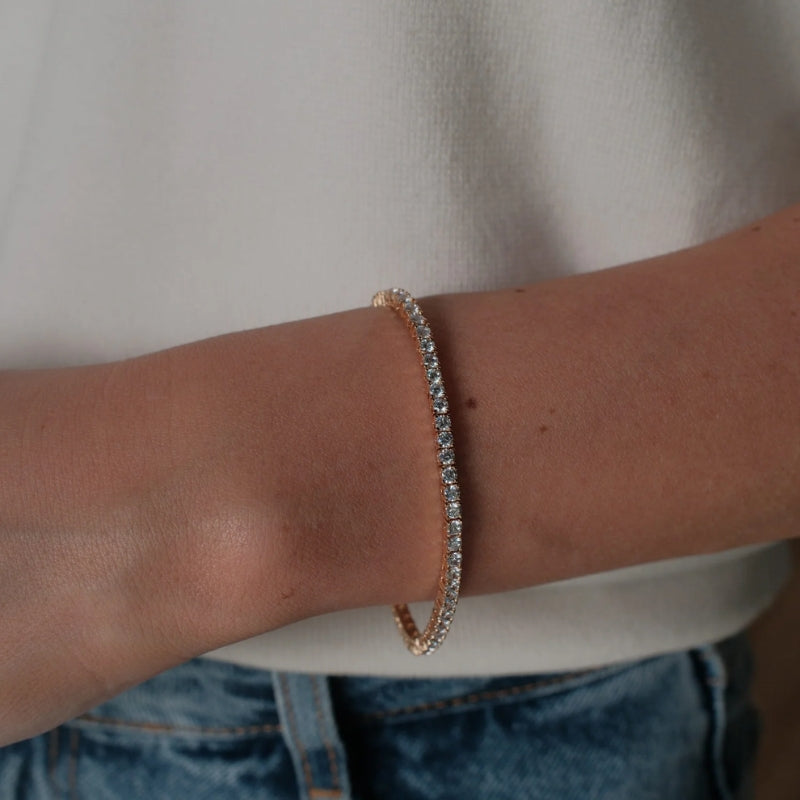 The matching bracelet to our viral Dani Tennis Necklace. This timeless piece features a row of shimmering crystals set in gold, offering the perfect balance of elegance and everyday wear.