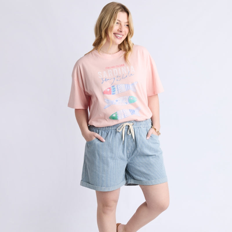 The Holly Stripe Short features a yarn-dyed stripe pattern for lasting color and texture. An elastic waist with drawcord provides adjustable comfort, while turn-up cuffs add a tailored touch to this relaxed and refined short. Perfect for casual yet polished summer wear.