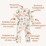 Organic Snugglesuits are convertible rompers - zipped onesies with foldover feet. Soft and stretchy, these convertible rompers are an easy-care, fuss-free option with a modern, fitted style. The rompers are made in SnuggleSoft™ fabric which is buttery soft. This design includes a two way zip, making it easy to get bub in and out for naptime and nappy change. Foldable hand mittens are included for newborn to 6 months and help stop little nails from scratching and also keep hands warm when the weather is cool. Bub can wear the mittens open or closed. For sizes from 6 months upwards, the mittens are replaced with a stylish cuff. Foot mittens are also an important feature and these are included on all sizes. Who doesn’t love to tuck in those little feet for bedtime to keep warm?