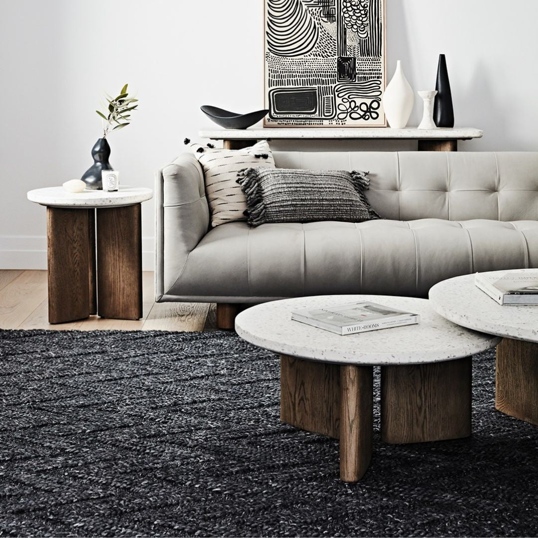 Create a signature look with a coffee table that is generously sized and dramatic. Modern in style the Mason Round Coffee Table offers a large space for displaying items or entertaining guests. Natural textures and hues make this an easy piece to pair with many other colours and patterns.