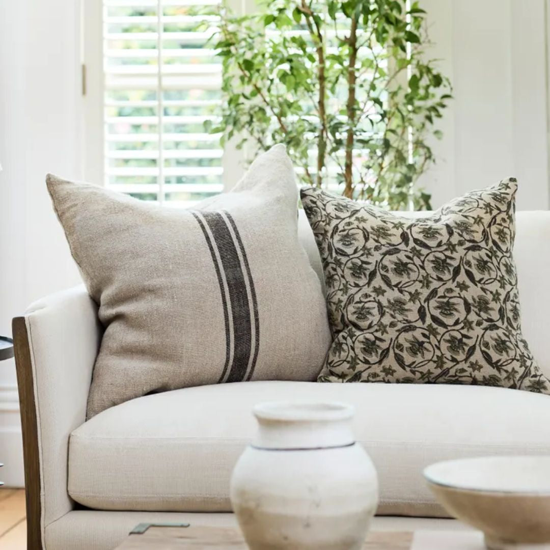 Style Description:Heavy linen textured cushion with simple brown stripe design. Inner sold separately.