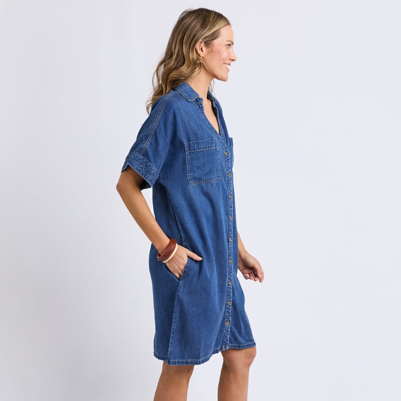 A classic shirt style lightweight denim dress for the ages. This timeless piece is an easy throw on and go piece that you'll be wearing on repeat.