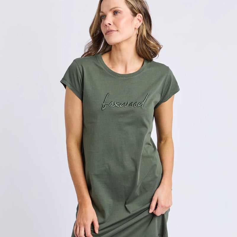 Foxwood | Signature Embroidery Tee Dress - Khaki
