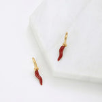 Bold and playful, the Red Chilli Earring is a huggie hoop featuring a vibrant red chilli charm, adding a fun and fiery touch to your jewelry collection. Perfect for those who love unique statement pieces, this earring is ideal for stacking or wearing solo for a pop of colour and personality.