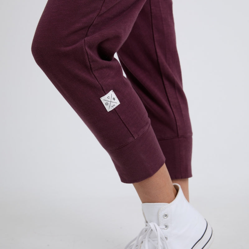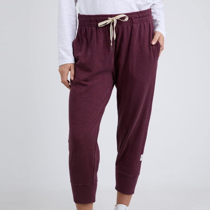 Made from 100% Cotton slub jersey, Elm's best selling Brunch Pant provides a relaxed and roomy fit, a comfy fit elastic waistband and adjustable tie. These cropped length pants feature a large cuff detail and will be your everyday go to!