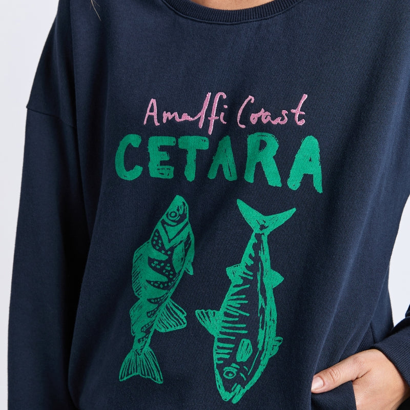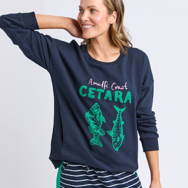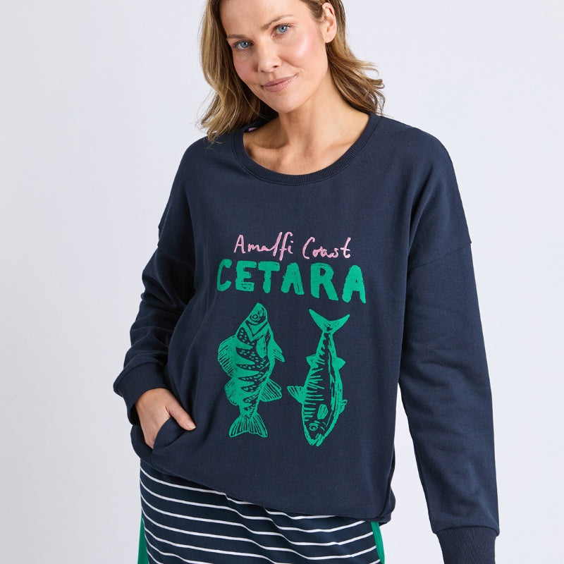 The Elm Cetara Crew combines cosy comfort with statement Elm detailing. Designed in a relaxed fit from 100% cotton unbrushed fleece, it features exclusive Elm artwork, rib detailing down the sides and a curved hem with back hem drop. Style with relaxed pants or denim for easy, everyday layering.
