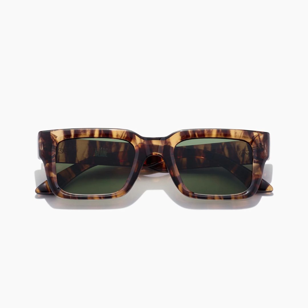 meet dixon ; he's the strong, silent type of sunglass. tall, dark and handsome with a chiseled jawline, dixon is a striking square sunglass frame with a bold, thick profile for the ultimate sartorial statement. he's literally everybody's type and suits most face shapes. if you're looking for understated elegance this grey tortoiseshell frame with dark green polarised lenses is perfect for all occasions.