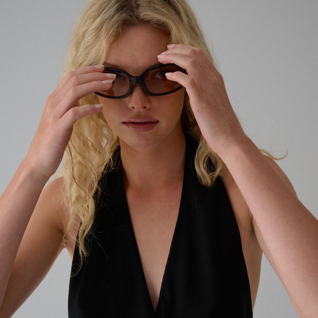 meet farrow ; a contemporary rectangular sunglass with statement bevels and contours to frame the face. inspired by the vintage sunglasses worn by Alain Delon in 'La Piscine' and 'The Sicilian Clan' this frame delivers 60's sex appeal and modern edge. a must-have black sunglass to instantly elevate any look.