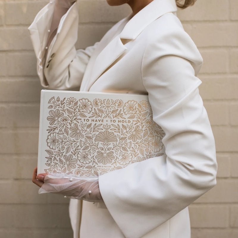 Australia's favourite wedding guest book (over 20,000 sold) has just been made even more luxe: it now features beautiful gilded edges. Classic, elegant and timeless, it features 160 blank pages with a metallic gold border, perfect for pasting in for polaroid photos and messages from your wedding guests.