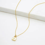 The Locket Mini Necklace features a sleek locket-shaped pendant adorned with a sparkling CZ crystal. Perfect for adding a touch of refined sparkle to your everyday look, this necklace is ideal for layering or wearing solo as a statement piece.