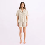 Complete outfits and elevate nightly routines with our short sleeve shirt. Crafted with comfort in mind, this classic silhouette features playful piping details, lapel collar and self-covered buttons for both slumber and style. Exceptionally soft and breathable, our short sleeve shirt is durable and silky to the touch. Designed to be mixed and matched, combine printed stripes and solid colourways to suit your personal style—or pair it with other wardrobe staples for easy, everyday dressing.