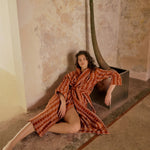 Our model Ema wears a size S/M robe.