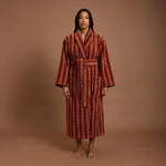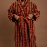 Our model Idriss wears a size L/XL robe.