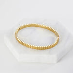 This is a sleek and modern gold-toned bracelet featuring a segmented design that adds a touch of sophistication and contemporary style. Perfect for stacking or wearing solo for a minimalist statement.
