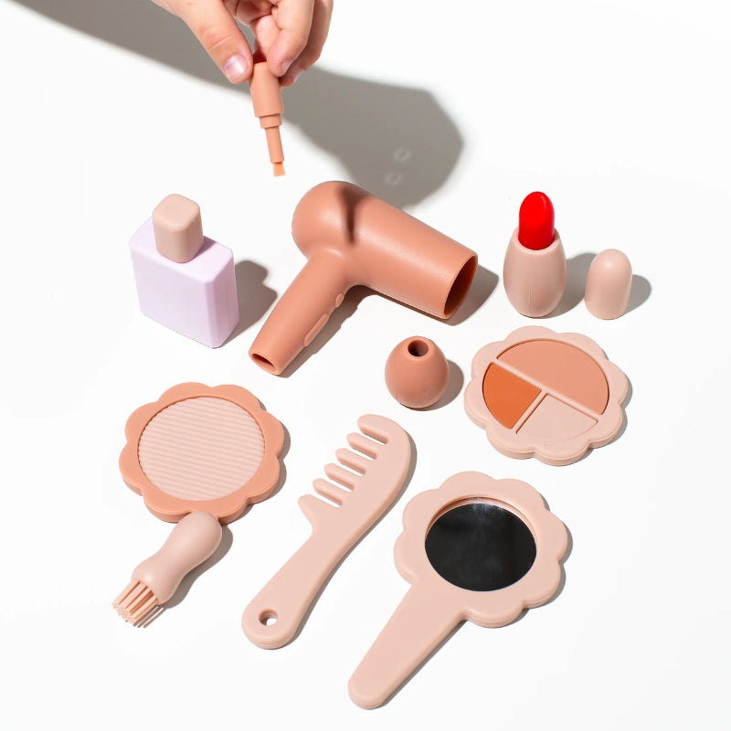 Get your kids ready for a playful makeover with the Littledrop Blush Beauty Set! Made with silicone for safe and fun play, this beauty set will have them creating endless looks. Let their creativity shine with this quirky and unique set.