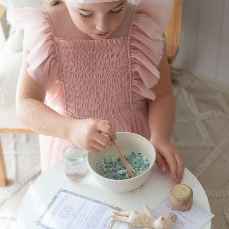 This potion is packed with sparkle dust, cloud fizz, fairy sprinkles, and starlight—everything needed to call your tooth fairy and create a new, glistening star.