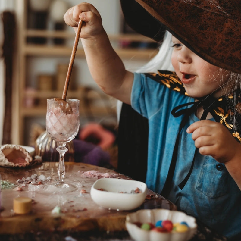 This potion play set is packed with spooky and sweet ingredients that are only available at Halloween times. Ingredients like Grave Gravel and Bone Dust and sweet Candy Crush and Raspberry Fizzle. Will you keep your spooky and sweet ingredients separate or make a big trick or treat witches brew? It's up to you and where your imagination can take you.