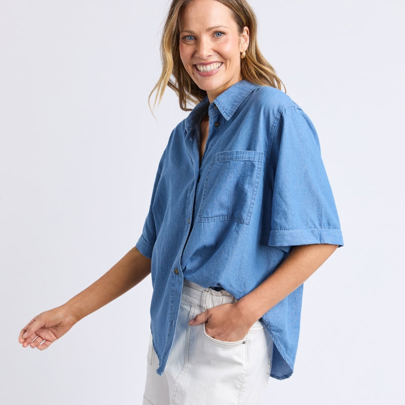 Elm | Blissful Chambray Shirt - Mid Blue Wash