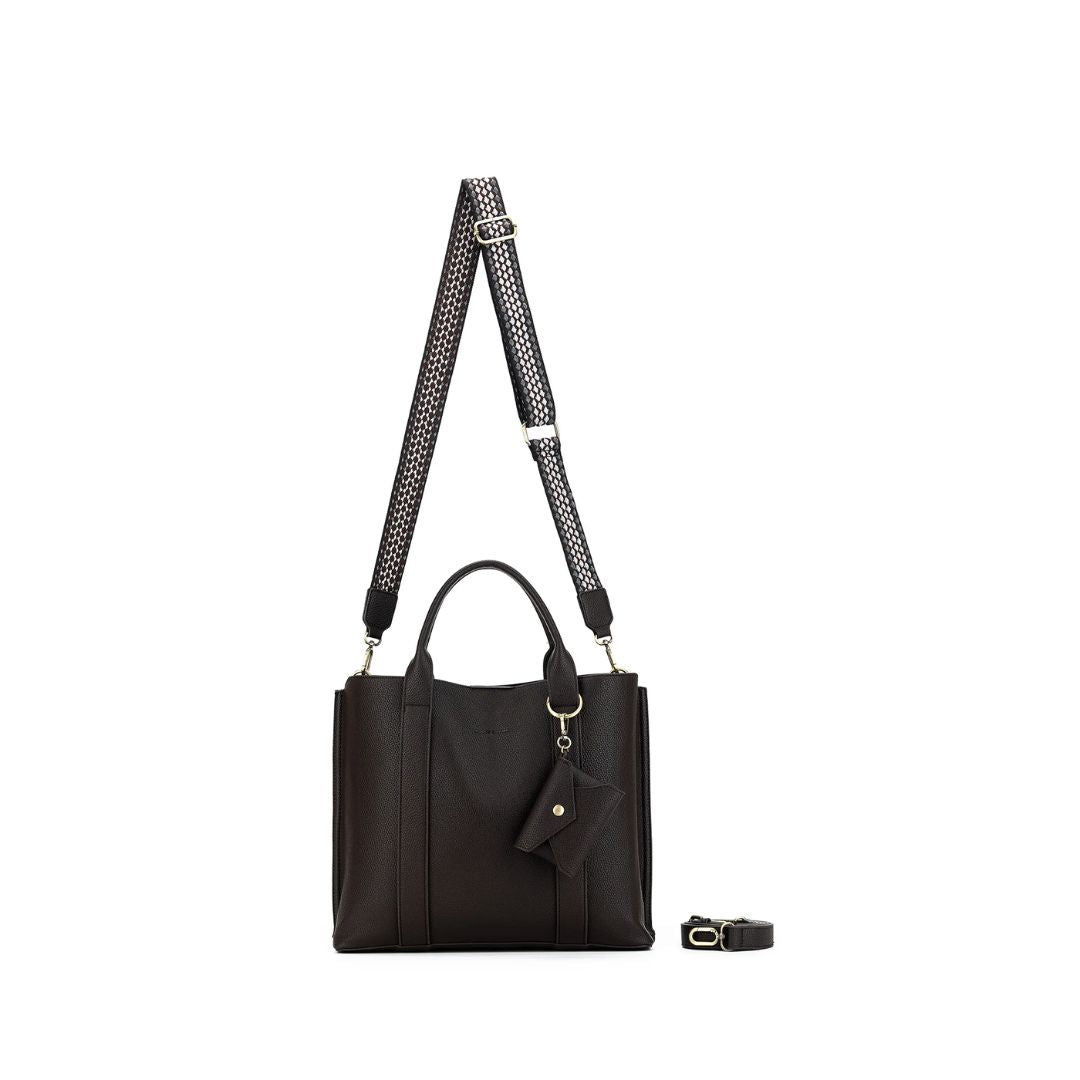 Crafted from premium vegan leather, the Margaux is the perfect companion for workdays, weekends, and everything in between. Designed with three spacious compartments, two flat pockets, and a zip pocket, it easily fits your 14" laptop, notebook, wallet, phone, and other daily essentials. This 2-piece set includes a detachable coin purse and a matching wristlet for extra storage or grab-and-go convenience. With both PU and cotton adjustable straps, Margaux offers versatile carry options while blending structure, style, and everyday function for the modern professional.