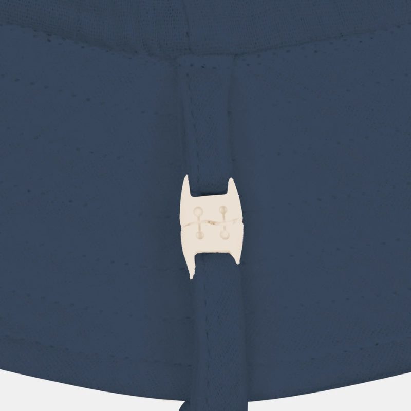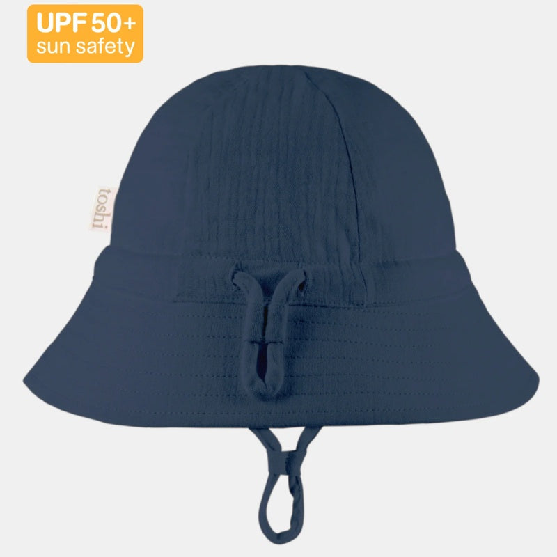Toshi Bell Hat Sammy is crafted from the finest quality certified 100% organic cotton yarn. Toshi Bell Hat Sammy is a flattering bell shaped hat. The cheesecloth fabrication features a supremely soft and gently nurturing texture. The UPF 50+ UV rating indicates maximum sun protection. A head tie with soft cotton toggle creates adjustable sizing. The chinstrap with soft cotton toggle secures the hat and offers ease of wear. The security release clasp on the chin tie is designed to enhance wearer safety. The sunhat is fully lined for increased comfort.