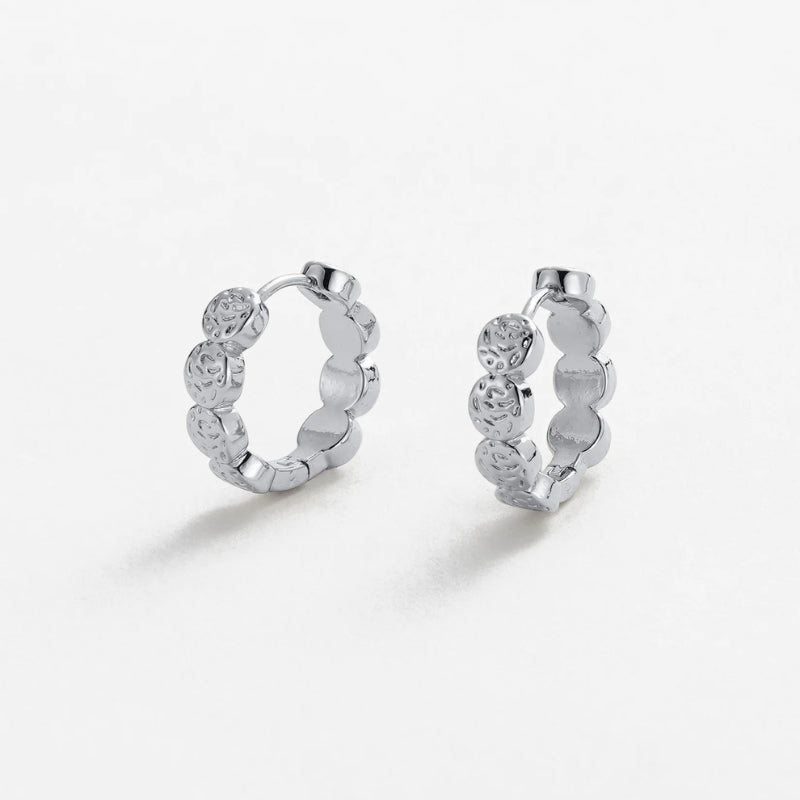 The Josie Huggie is a textured small hoop that brings subtle detail to a timeless silhouette. Featuring an intricate embossed design in a polished gold finish, this huggie is lightweight, versatile, and perfect for everyday wear. Style solo for understated elegance or stack with other hoops and studs for a layered ear.