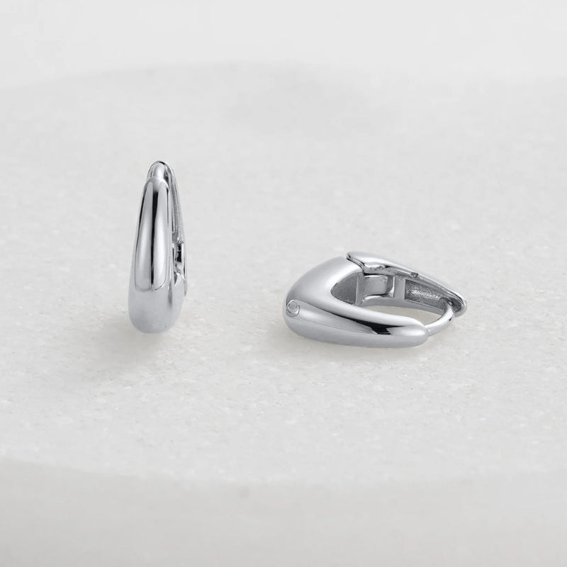 The Neve Huggie features a smooth curved design with a high-shine gold finish, making it a timeless everyday staple. Perfect for adding a touch of understated elegance to any look – wear solo or stack with your favourite hoops for a modern layered style.