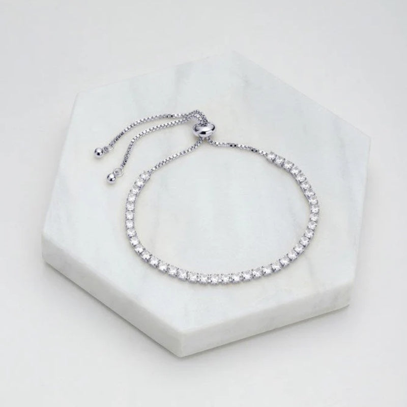 Meet our Nikki Tennis Bracelet – an exquisite blend of timeless elegance and comfort. This bracelet features a classic design with sparkling stones, exuding a refined charm. What sets Nikki apart is its adjustable design, ensuring the perfect fit for any wrist. Elevate your style effortlessly with the Nikki Tennis Bracelet, a versatile accessory that adds a touch of sophistication to every occasion.