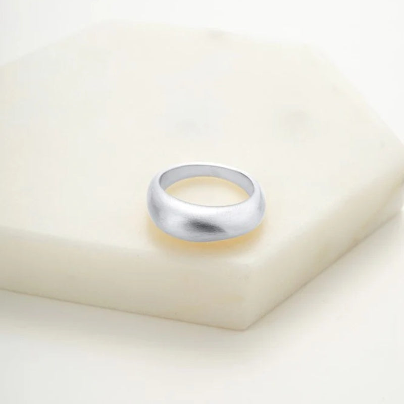 Introducing the Steph ring: a sleek and stylish accessory designed to elevate your look effortlessly. Crafted in a beautiful brushed silver, this ring exudes modern sophistication with its minimalist design.