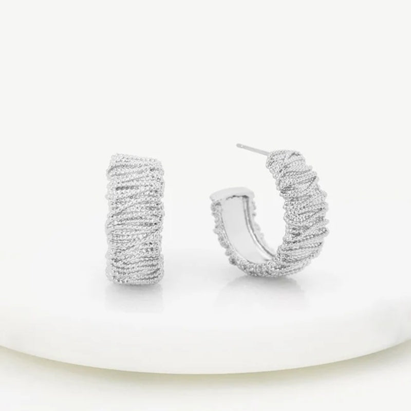 The Ophelia Hoop is a textured twist on a classic silhouette. Its ruched gold detailing creates depth and dimension, making it a standout piece while still remaining versatile for everyday wear. Lightweight and polished to perfection, this hoop is designed to complement the Ophelia Bracelet and Ring for a beautifully coordinated look.